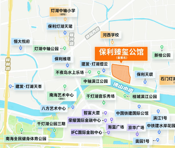 保利臻玺公馆西邻建发灯湖缦云,东靠保利天瓒,地处佛山灯湖中轴核心地段,该板块被誉为佛山版“珠金琶”,是城市重点发展的高端居住与商务集聚区域。从区位发展来看,灯湖中轴片区聚焦金融、政务、文化三大核心功能,城市资源集中度高,是佛山高端人居板块的核心代表,项目占据片区一线江景席位,区位禀赋突出。公共交通方面,依托片区成熟的路网体系,衔接城市主干道,便捷通达佛山各大核心板块;随着沥桂人行桥招标完成,后续步行过江交通将进一步打通,实现跨江出行的高效衔接,丰富业主出行选择。