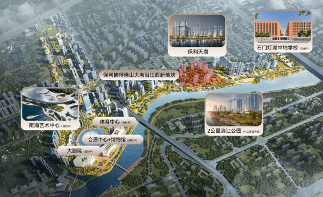 项目地处灯湖中轴片区,该片区串联千灯湖金融区、政务核心区与文化集聚区,周边生活、政务、文化资源密集,多项重磅规划已进入落地实施阶段。文化配套方面,南海艺术中心已动工建设,建成后涵盖大剧院、博物馆等核心场馆,为业主提供近距离的文化休闲场所;一江之隔的千灯湖演艺中心已完成签约,预计2027年正式亮相,进一步丰富片区文化生活场景。交通配套方面,沥桂人行桥已启动招标流程,建成后可实现步行过江,便捷衔接江对岸的商业、休闲资源,打破两岸出行壁垒。