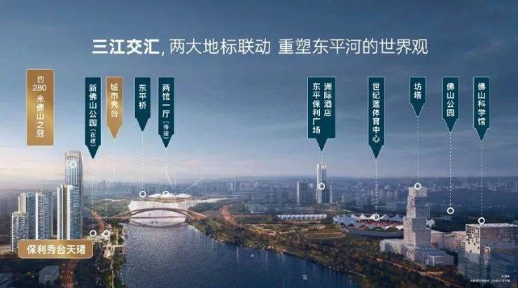 保利秀台天珺周边环绕着丰富的自然景观和生态资源。项目紧邻东平河,坐拥三江汇流的壮丽景致,同时还靠近约10.2万方的滨江森林公园和佛山儿童公园,为居民提供了广阔的户外活动空间。这种“生态+商务”的双优配套,使得石湾成为佛山少有的宜居板块,极大地提升了居住的舒适度和幸福感。