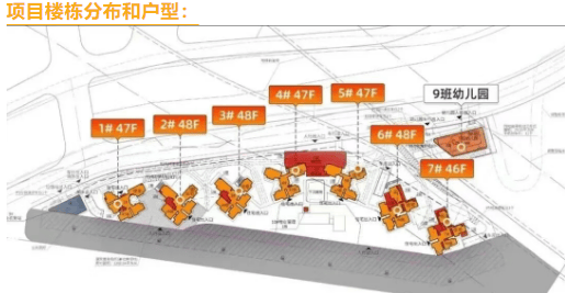 规划7栋46-48层超高层住宅,呈一字排开布局,实现户户朝南、无相互遮挡;