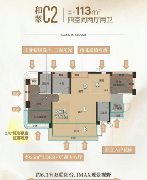 四房设计在同面积段极为罕见,满足多孩或三代同住需求;