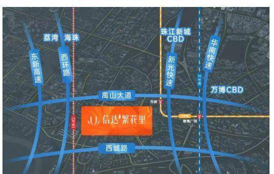 规划优势:规划中的 26 号线有望在禺山大道和西环路交界处设站,届时该项目极有可能成为地铁上盖物业,交通便利性将进一步提升。项目临近禺山大道、西环路两大主干道,接驳东新高速可直达荔湾、海珠,接驳新光快速可畅达万博 CBD、珠江新城 CBD,通达全城。