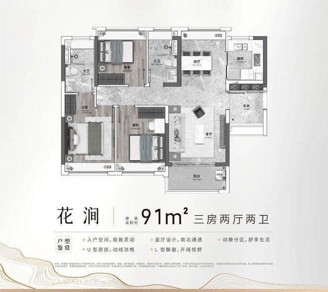 肆:令人惊艳的户型户型设计主打 “实用” 和 “通透”✨ 91-168㎡的三至四房,亮点超多:✔️91㎡四开间朝南:U 型厨房利用率高,小户型也能做到全明格局,刚需家庭闭眼入;✔️106㎡三房 / 四房:大阳台是标配,采光通风一级棒,功能空间划分合理,三口之家住得舒服;✔️142-168㎡大户型:2 梯 2 户私密性好,大开间设计 + 宽景阳台,适合改善家庭,整体布局中规中矩,符合大众居住习惯。没有花里胡哨的设计,每一寸空间都用在刀刃上,住起来踏实又舒服~
