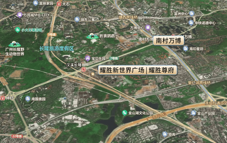 项目雄踞广州南拓战略要地——万博-长隆商圈核心,真正实现“三轨交汇、无缝换乘”:地铁3号线、7号线与佛莞城际轨道在项目地下交汇,形成湾区高效通勤网络。由此出发,约15分钟直达珠江新城CBD,30分钟覆盖广州南站与白云国际机场,快速联动佛山、东莞等大湾区核心城市。项目创新打造四层立体交通体系,从地铁站厅经专属连廊直通住宅大堂,全程风雨无阻,私密归家动线贯穿“地铁—商业—住宅”三大场景,充分彰显TOD模式的便捷与尊崇。