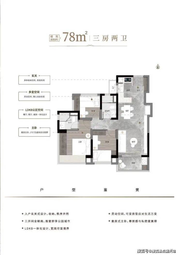 建面约78-140㎡三至四房,南北通透,得房率超85%;