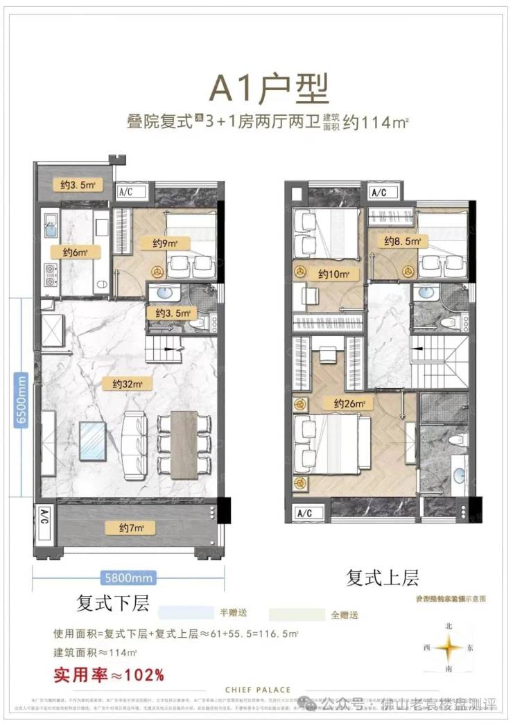 114㎡ 5房复式(空间大,适合多孩家庭)