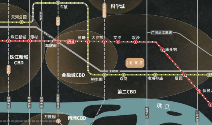 交通通达度直接决定房产的流动性。项目紧邻地铁13号线南海神庙站(直线距离约800米,一期已通车,二期即将通车),30分钟直达珠江新城。同时临近地铁5号线双沙站(直线距离约1.3公里),4站到金融城,30分钟直达珠金琶CBD。地面交通方面,黄埔大道、临江大道、广深沿江高速构成“三纵三横”路网,1小时生活圈覆盖广深莞三地。