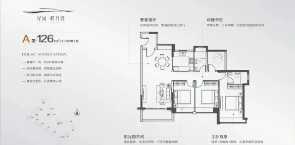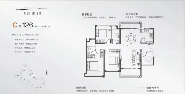 约114-126㎡四房:为多代同堂或追求高品质生活的家庭量身定制。