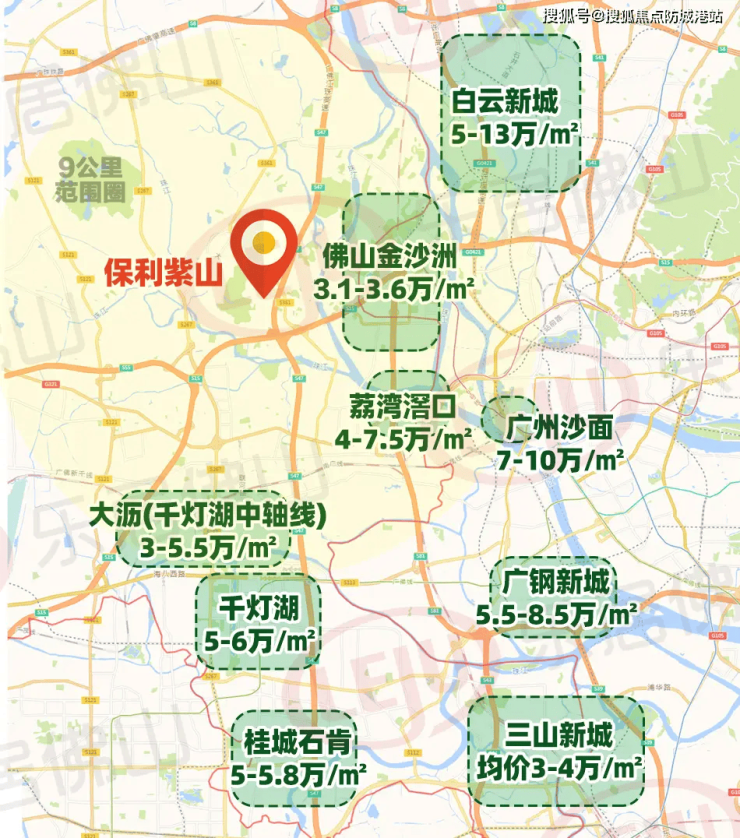 路网交通:项目周边“三横三纵”主干道(华南快速、广佛肇高速、里水大道等)通达珠江新城、金融城等重点板块。实测数据:从项目出发,驾车约20分钟直达白云万达,约25分钟抵达天河城,通勤效率远超同区域竞品。