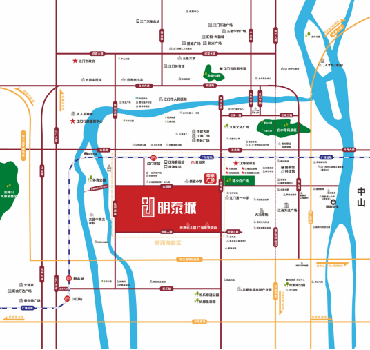 明泰城坐落在江海区区府旁的中央商务区,毗邻广珠轻轨江门东站,轻松抵达蓬江区、新会城区以及中山古镇。周围路网发达,约5公里范围内3大高速环绕,为居民提供了便捷的出行条件。同时,这里也是集商业、教育、医疗于一体的综合性区域,满足了居民日常生活所需的一切。