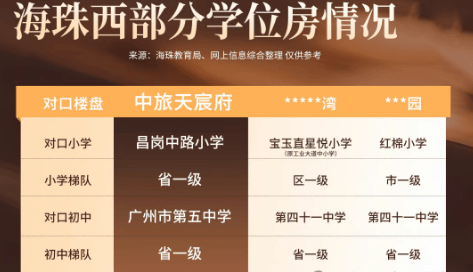 项目对口的是省一级名校昌岗中路小学,直升广州市五中附属初级中学,为孩子的教育提供了有力保障。该区域还属于海珠区最强教育板块之一,整体教育资源丰富,未来将通过多校划片加电脑派位方式升学,确保教育质量。