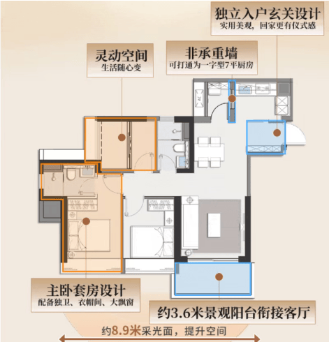 87平方米小户型,采用少承重墙化设计,空间灵活多变。