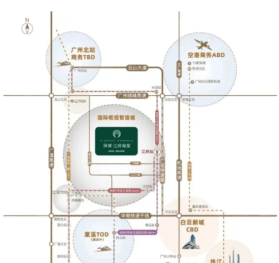 交通便捷性是刚需项目的核心竞争力之一,绿城江府海棠在这方面表现突出。项目距离地铁 8 号线北延段及北延段支线江府站仅 800 米左右,目前该线路工程进度已达 23%,未来通车后,业主乘坐地铁 6 站即可直达珠江新城 CBD,10 站抵达北京路商圈,还能直达广州市政府,轻松融入广州核心城区的生活圈,极大缩短了通勤时间。
