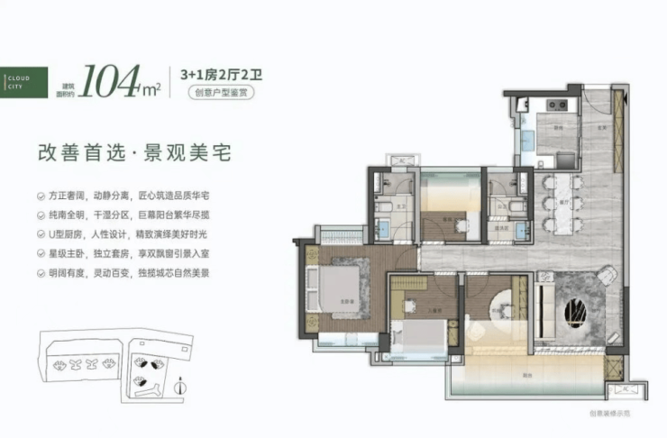 四开间朝南,主卧独立卫生间,双飘窗设计增强通风对流。次卧面积扩大,可容纳二胎家庭或三代同堂需求。