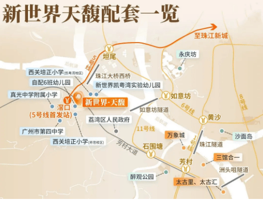 除西关培正小学外,项目3公里范围内还分布有广州四中等多所省一级学校,初中派位可优先对接广州四中、广雅中学等优质学府,形成从小学到初中的优质教育闭环,满足孩子不同阶段的教育需求。此外,项目还规划配建6班公立幼儿园,进一步完善全龄教育配套,让业主孩子足不出社区,就能享受优质启蒙教育。片区名校圈的形成,离不开新世界中国十年如一的躬身入局,先后引入广州四中、西关培正凯粤湾校区,持续升级片区教育能级,为业主孩子提供更优质的教育资源。