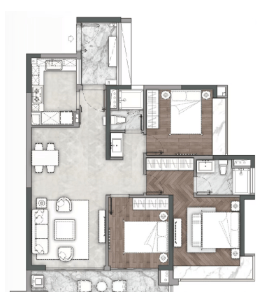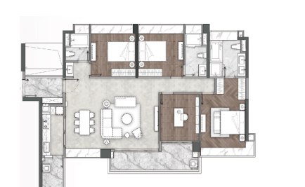 项目采用豪宅标配,全球品牌荟萃,精挑细选装修用材,遵循集团住宅体系内最高端装修标准,引入国际知名精工品牌与先进智能化设计,既保障居住安全,又提升生活便捷性。外立面历经三年反复打磨,采用大面积玻璃与石材幕墙等材料,尽显高端品质。