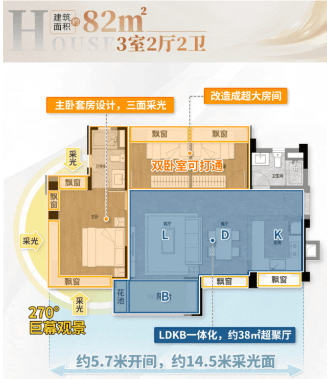 6. 户型亮点:实用率破百,小户型也能享横厅海景