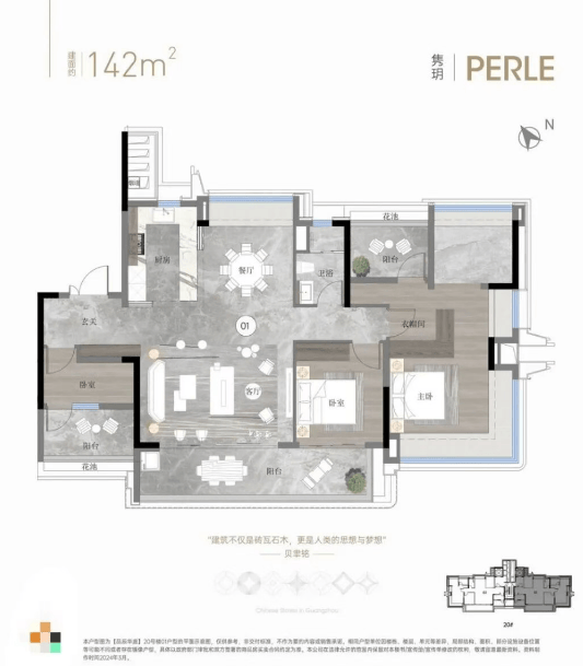 目前主推的二期产品集中在196㎡至279㎡区间,使用率普遍在100%–110%之间。以19栋15层板式小高层为例,230㎡户型配置私家电梯厅、双主卧套房、独立佣人房,并采用LDKB(客厅+餐厅+厨房+阳台)一体化大方厅设计,动线流畅且无浪费。特别值得一提的是主卧L型270°飘窗,不仅采光面广,还能将社区园林或远处琶洲天际线纳入视野。而24栋的176㎡与215㎡户型,则通过洄游动线与多功能空间预留,满足多孩家庭或三代同堂的全周期需求——比如靠景观阳台一侧的灵活空间,可随时切换为书房、茶室甚至儿童活动区。
