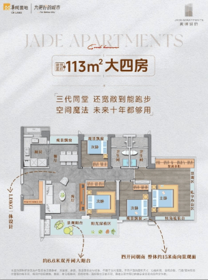 广州黄埔润府遵循新规高使用率设计理念,打造多款主力户型,兼顾空间实用性、居住舒适度与景观视野,满足刚需、刚改家庭多元需求。其中建面约113平方米四房户型,采用南北通透纯板式设计,全明格局无采光死角,南向面宽超10米,客厅连接阔景阳台,采光通风效果优异。户型采用LDK一体化设计,客厅、餐厅、厨房连通,拓展公共活动空间,满足家庭聚会、亲子互动需求。动静分区合理,休憩区与活动区完全分离,保障居住私密性。主卧配套独立卫生间与全景飘窗,打造专属私密空间,次卧空间方正,可作为儿童房、老人房或书房,功能灵活多变。入户玄关设计收纳系统,提升空间利用率,全屋干湿分离设计,便捷实用。另一款建面约95平方米三房户型,空间方正紧凑,无浪费面积,高使用率设计媲美大户型体验,三开间朝南,采光充足,客厅连接阳台,卧室带飘窗,兼顾实用与舒适。两款户型均遵循人体工程学设计,动线合理,拓展空间丰富,在主城核心地段实现小面积大功能,以高空间利用率、优质户型格局,成为主城置业优选。