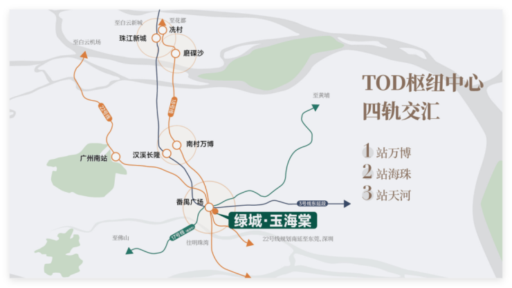 更值得一提的是,番禺广场正以TOD复合型城市发展模式焕新升级,规划中的钻石喷泉广场、螺旋艺术展廊、宝石商业广场与翡翠绿阶等景观节点,将自然与人文巧妙串联,形成“大珠小珠落玉盘”的空间意境,为玉海棠业主构建起一个兼具艺术感与生活感的城市客厅。