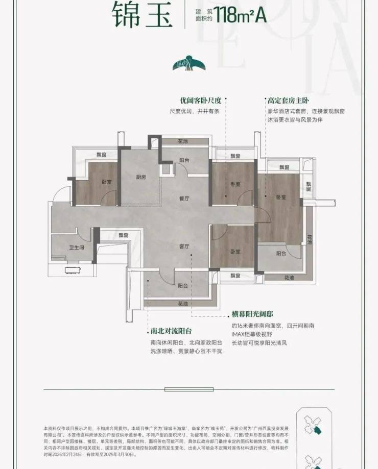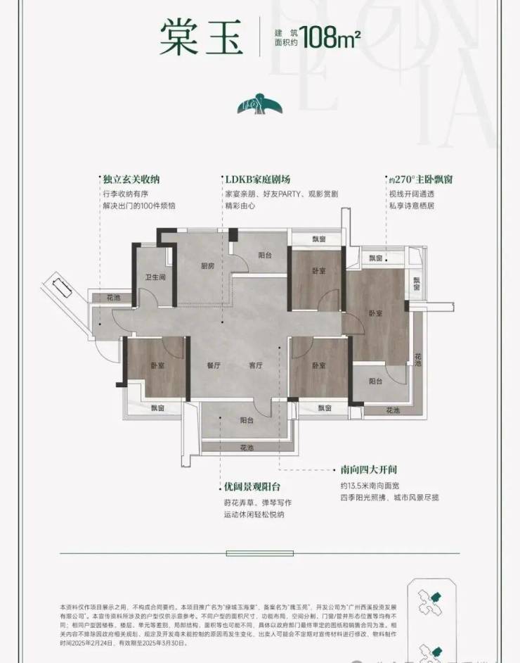 尤为亮眼的是,项目实现高达115%以上的使用率,堪称番禺首个超110% MAX使用率户型标杆。以建面约105㎡户型为例,虽为紧凑四房,却通过南北对流、东南单边位布局,实现全屋通透采光;所有房间均带花池或飘窗赠送,主卧可轻松容纳独立衣帽间,实际使用面积接近120㎡。入户花园不仅提升收纳功能,更赋予归家一份专属仪式感。