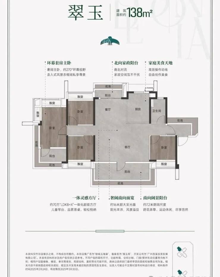 而138㎡大平层更是将空间尺度推向极致:LDKB一体化大方厅约70㎡,堪比一套刚需小户型,双阳台、南北对流、入户花园一应俱全,既满足三代同堂的多元生活场景,又不失高端改善的气度与格调。