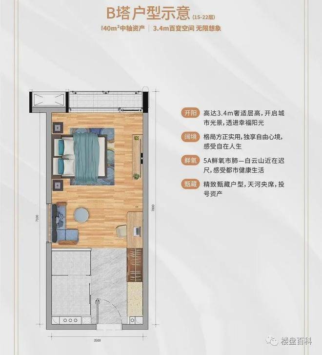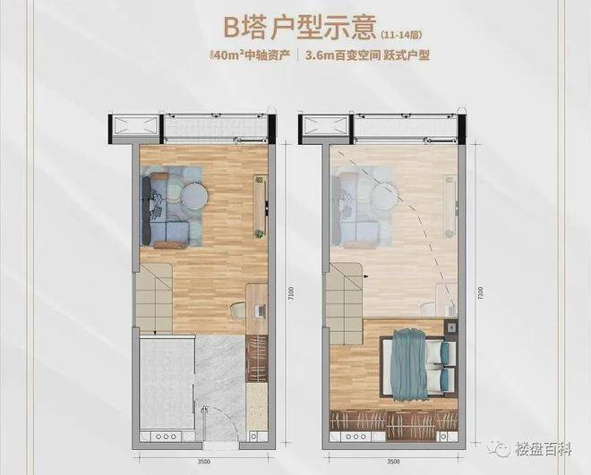 户型设计独具特色。建筑面积约 31 - 57㎡ ,40㎡为主力面积段,虽面积不大,但合理规划了卧室、厨房、卫生间。4.5 米高的超高空间,中空挑高设计,重新解构空间,能打造出大 House 的体验,为城市奋斗者缔造理想空间。通过巧妙设计,可将空间灵活利用,比如隔出上下层,增加使用面积,满足居住和生活的多种需求。