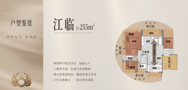 户型设计强调“一字排布、栋栋皆楼王”的江景平权理念,确保每一套住宅都能最大化揽入三江盛景。无论是约128㎡的精致四房,还是450㎡的顶层大宅,均以LDK一体化、全景落地窗、双主卧套房等细节,诠释当代塔尖生活的尺度与格调。