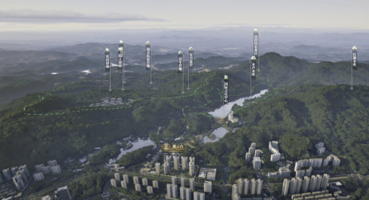 项目位于长岭居板块的核心腹地,这里是广州东部唯一的“省级生态文明示范区”。不同于南沙、增城需要漫长的兑现周期,长岭居经过十年深耕,已初具雏形。项目背靠鸡啼山,临近白水湖,周边森林覆盖率超60%,是广州难得一见的“半山半城”格局。这里的土地价值,是由稀缺的生态资源支撑的,而非单纯的概念炒作。