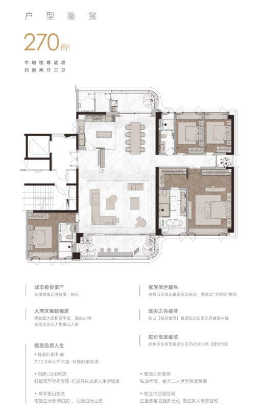 住宅部分由9栋25层至35层的大平层组成,每户设计均以豪宅标准打造,力求最大化利用景观优势,特别是东南北三向均可望到白云山美景。此外,大平层公寓也以其卓越的设计和居住体验赢得了市场的广泛认可。