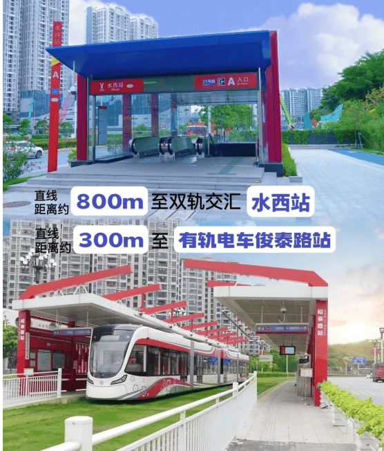 项目位于科学城区府核心板块,区位优势显著:周边超 130 家世界 500 强企业林立,产业高地属性明显,发展前景广阔;与网红大盘科城山庄仅一路之隔,可共享成熟居住氛围。交通方面,距地铁 7 号线二期与 21 号线交汇站水西站直线约 800 米,3 站直达天河;直线 300 米即有轨电车 1 号线峻泰路站,3 站接驳地铁 6 号线香雪站;自驾紧挨萝岗高速出入口,出门可接驳广佛肇高速,快速通达市区,不管是地铁通勤还是自驾出行,都高效便捷。