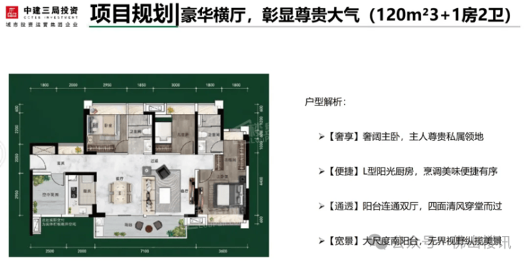 户型设计方面,项目在售79-120㎡三至四房,带装修交付,单价约9800元起。以89㎡三房为例,采用竖厅设计,主卧带飘窗,次卧预留可变空间,可根据需求改造为书房或儿童房。118㎡四房则通过5.5米宽景阳台和南北通透格局,实现采光与通风的优化,部分高楼层单位可远眺东平河景。