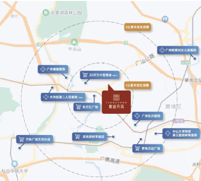 振业天成位于广州市黄埔区黄陂板块,紧邻天河智慧城。尽管距离最近的地铁站直线距离约1.8公里,步行稍显不便,但周边完善的高速网路系统使得自驾出行十分便捷。通过广汕路、广园快速等主要干道,可迅速抵达广州市内各大核心区域。特别是对于在天河智慧城工作的居民来说,驾车通勤仅需不到40分钟,极大地提升了生活效率。