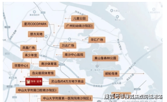 华丰金湾周边商业、医疗配套逐步完善,满足业主日常生活需求。商业配套方面,项目一路之隔有即将开业的 6000㎡华润万家,未来业主下楼即可享受便捷的购物服务,满足日常采购需求;周边还有南沙粤海广场和大元商业中心等商场,可提供更多购物、餐饮选择;同时,灵山岛尖地下空间的出入口距离项目约 2 公里,未来将成为重要的商业中心,进一步提升区域商业能级。医疗配套方面,一江之隔的横沥岛尖正在建设中山大学附属第一医院南沙分院,预计今年内投入使用,该院为优质医疗机构,将为业主及家人提供专业、及时的医疗服务,保障健康生活。
