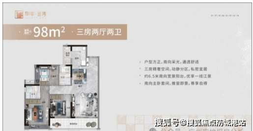华丰金湾户型设计科学合理,充分考虑居住实用性与舒适性,在售户型包括 98㎡、115㎡、125㎡、143㎡、196㎡,满足刚需与改善客群的不同需求。项目全部户型为正南向或偏东南、偏西南朝向,确保充足的采光与良好的通风效果。其中 125㎡四房户型分为竖厅、横厅两种设计,且与其他四房单位均为单边位,拥有景观大阳台,不仅视野开阔,还能更好地欣赏江景或园林风光,对流采光条件极佳,居住体验舒适。其余户型同样注重空间布局,功能分区明确,主卧、次卧尺度适宜,部分大户型还具备宽敞的客餐厨空间,满足多人口家庭的居住需求,精装现房交付更是让业主 “所见即所得”,无需担忧装修质量与交付延迟问题。