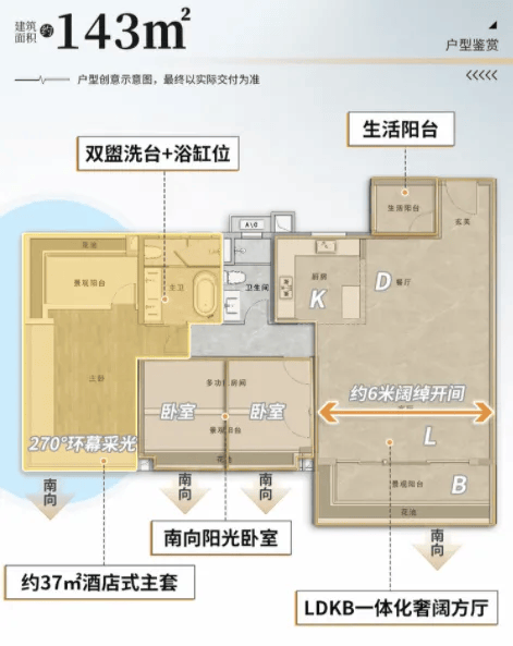 对于改善家庭来说,项目的建面 115㎡、129㎡、143㎡四房两卫户型,绝对能满足居住需求。建面 115㎡四房两卫,功能分区清晰,能满足多人口家庭的使用需求,总价约 575 万起,适合二胎家庭或三代同堂的改善家庭;建面 129㎡四房两卫位于楼栋高区,视野开阔,居住舒适度更高,总价约 645 万起,推窗就能欣赏到社区的立体景观;建面 143㎡四房两卫是项目的改善标杆户型,空间阔绰,配置独立玄关库与 U 型厨房,收纳空间充足,总价约 715 万起,适配改善家庭长期居住需求。