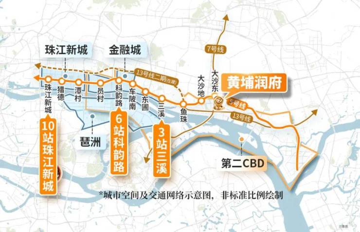 地铁7号线二期开通后,将极大提升老黄埔的交通便捷度。其中,大沙东站作为5号线和7号线的换乘站,将成为黄埔芯的重要交通枢纽,而黄埔润府距该站点仅300-400米,步行5分钟即可抵达,业主可通过7号线直达长隆万博、大学城等板块,通勤和出行选择更丰富。此外,线路开通后,将缩短老黄埔与番禺、海珠的时空距离,带动区域人流、物流、资金流的流通,进一步提升板块价值。