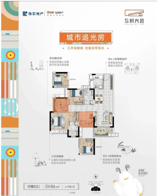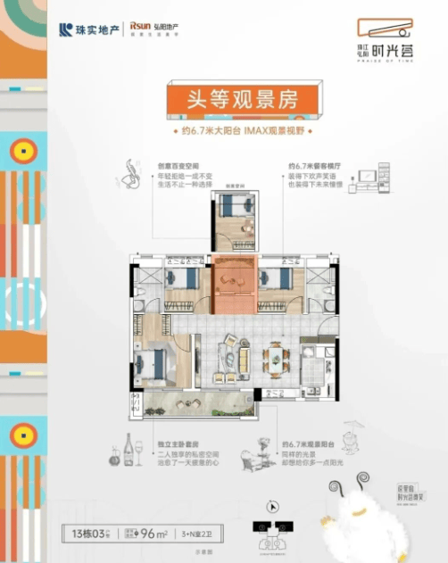 86–96㎡三至四房:LDK一体化+景观阳台,满足改善需求。