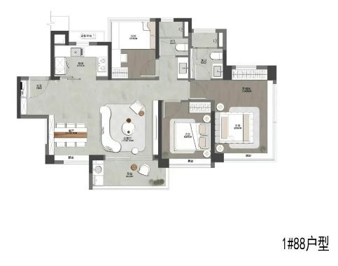 面积段:约 85 - 128㎡南向超高使用率新规三至四房