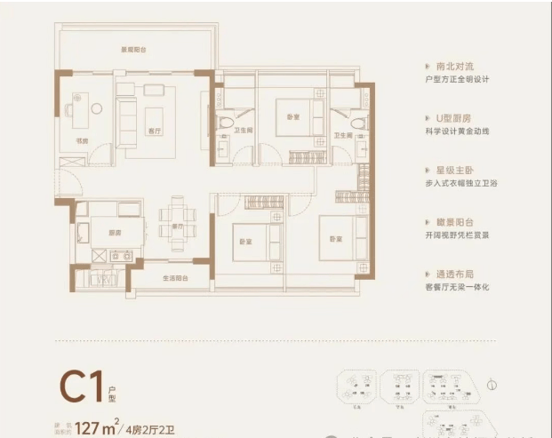 128/142/143平方米户型:宽敞明亮,满足大多数家庭需求。