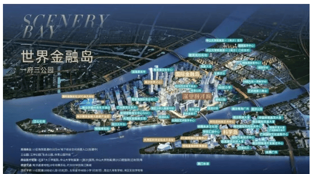 项目北向一线望江,俯瞰灵山岛景观,周边聚集了青少年宫、南沙体育馆、南沙图书馆等大型文化配套设施。更有三大公园环绕,毗邻近7.8公里的滨海景观带,包括湿地公园、游艇码头和明珠湾文化公园,让居民在紧张的工作之余能够尽情放松身心。