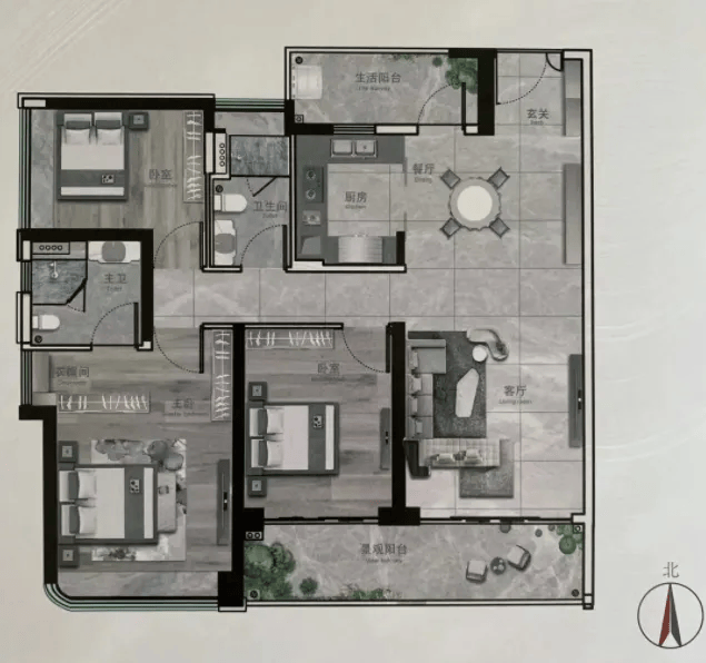 建面约192㎡四房:南北通透,采光通风俱佳,满足多代同住需求;