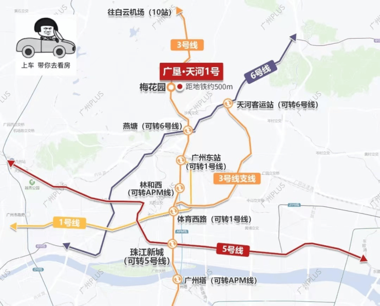 作为地铁口物业,广垦·天河1号距离地铁3号线梅花园站仅400米,两站即可抵达广州东站,五站直通珠江新城,快速连接广州核心商圈。自驾出行同样便利,周边有多条主干道环绕,半小时内畅达全城。
