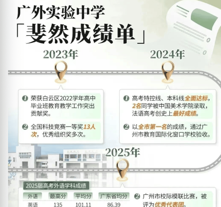 成绩:2025 年高考英语最高 135 分、法语最高 143 分,全区前列