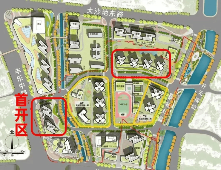 项目为华润置地开发的新溪旧改项目,拿地后严格按照规划推进建设,总用地面积14.64公顷,规划计容总建筑面积39.62万平,整体建筑面积约50万方。项目共规划7个地块,包含2个复建地块、2个融资地块、2个商业地块及1个学校地块,总户数约1000余套,首期推出400套房源,竞争压力小,后期流通性更有保障。