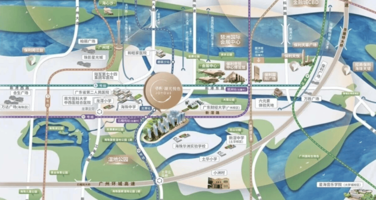 海珠保利湖光悦色位于海珠区华洲路与新海街交叉口南 50 米,交通网络四通八达,出行极为便利。