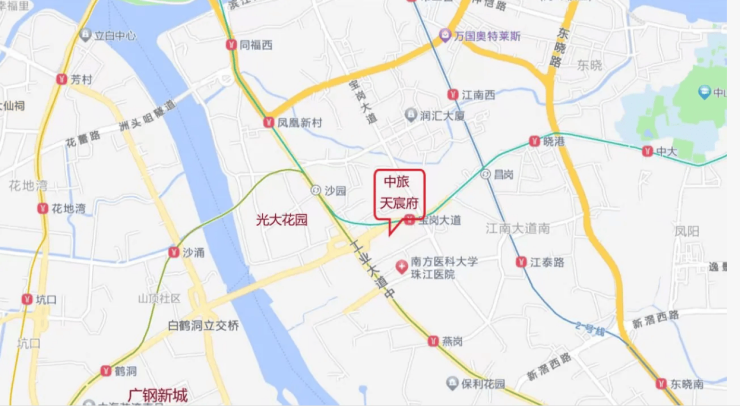 买房先看区位,这是老祖宗传下来的“置业真理”,放到现在依然不过时。尤其是在广州这样的一线城市,核心城区的地段优势,直接决定了居住的便捷度和房产的保值力。中旅天宸府的区位,用“老天爷赏饭吃”来形容一点都不夸张——地处昌岗中路与宝岗大道交汇处,妥妥的海珠西成熟生活区核心,这里不是那种“画大饼”的新区,而是已经发展成熟、烟火气拉满的老城区,住在这里,每一天的生活都能过得很省心。