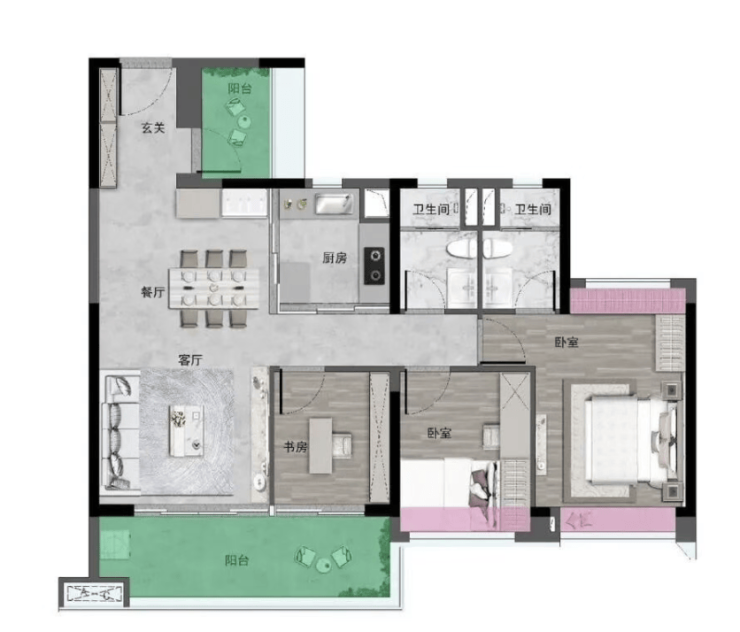 88㎡楼王全南三房:全南向设计,采光通风极佳,三房设计满足三口之家需求,空间宽敞舒适。