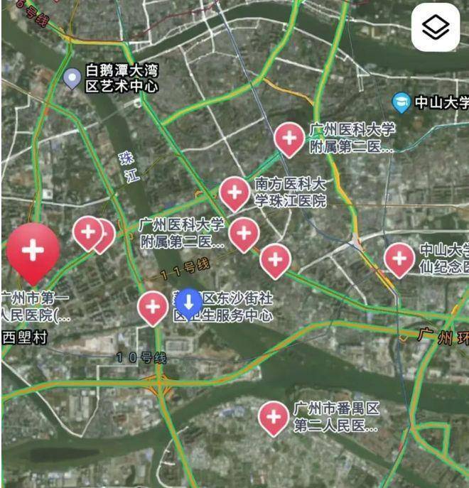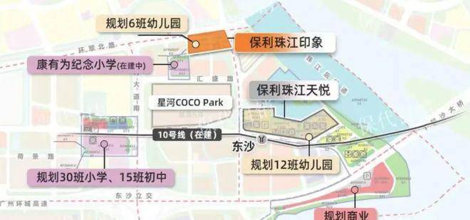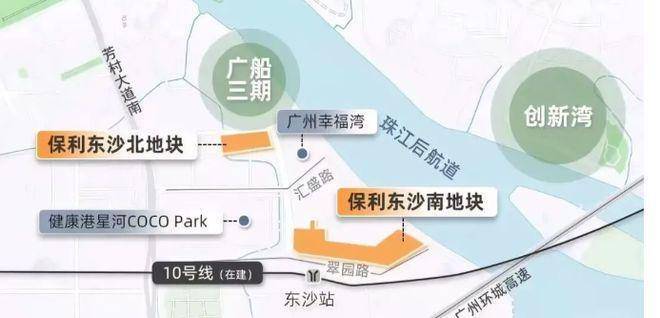 项目交通条件极为便利。距离在建的地铁 10 号线东沙站约 700 米,预计 2025 年底开通,届时 1 站可达对岸海珠西,4 站至中大,6 站抵滨江东,更可零换乘直达珠江新城,快速融入城市核心区域。1.3 公里处已开通的地铁 11 号线环线,进一步拓展出行范围。1 公里内分布着健康港总站、沙洛市场等公交站,提供多样化公共交通选择。同时,规划中的水上巴士及港湾码头(计划 3 年内完工)将增添独特出行方式。自驾方面,邻近白鹅潭大道,外通东沙石岗隧道,快速接驳环城高速、东新高速,畅行全城。