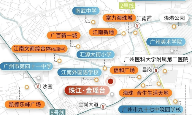 生活配套更是珠江·金瑶台的一大亮点。项目周边商业氛围浓厚,步行范围内汇聚富力海珠城、江南新地、广百广场、乐峰广场、海珠新天地、万国奥特莱斯等多个大型商业综合体,日常购物、餐饮娱乐、亲子休闲一应俱全。此外,几百米外便是以平价新鲜著称的沙园市场,烟火气十足,为日常生活增添一份地道的老广温情。